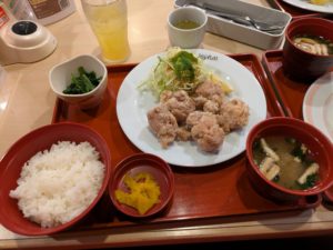今回は奢りだったので、24時間食べられるモーニングセットではなく高級な唐揚げ大盛ご飯セットをいただきました。